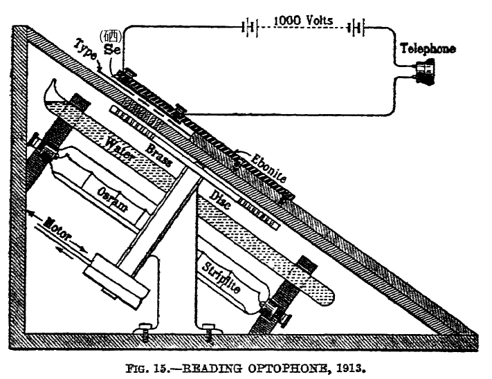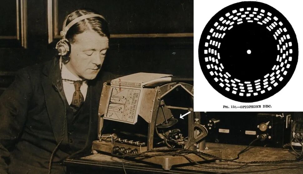 早在1913年,英国伯明翰大学的物理学家埃德蒙·富尼耶·达尔贝(Edmund Fournier d'Albe),就展示过一台帮助盲人听书的扫描仪,取名“Optophone”(光电阅读装置)。几年过后,设备又被一家科学仪器制造商改造成了更实用的版本。