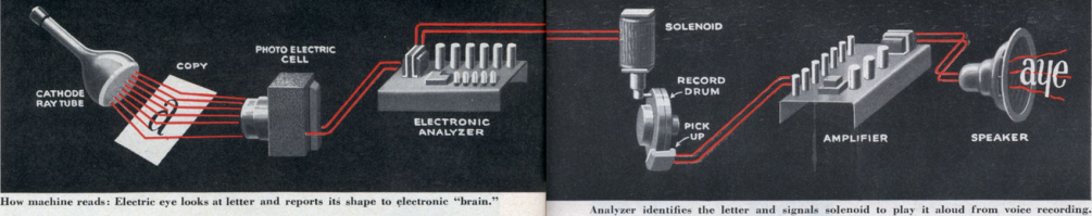 1949年,美国无线电公司(RCA)的工程师们借鉴了光电阅读装置的原理,为盲人群体制造出一种新的阅读机器。