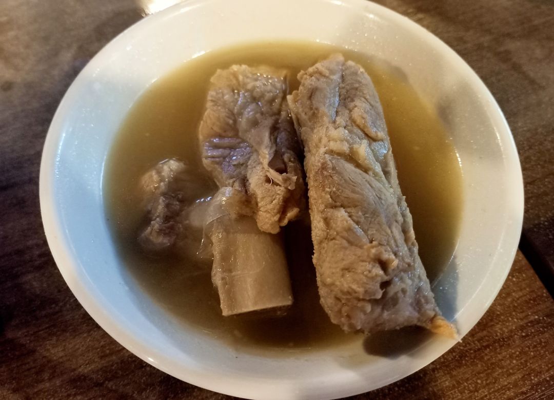细嫩的猪肋条在金棕色、香气浓郁的汤底里滚得软极。浓郁的茶汤里,胡椒的辛辣滋味儿格外明显,蒜头也在汤里带上了浓墨重彩的一笔,被炖到几乎要化开去的蒜头,随便抿一抿都是肉香,似乎比真正的排骨肉还好吃上几分。
