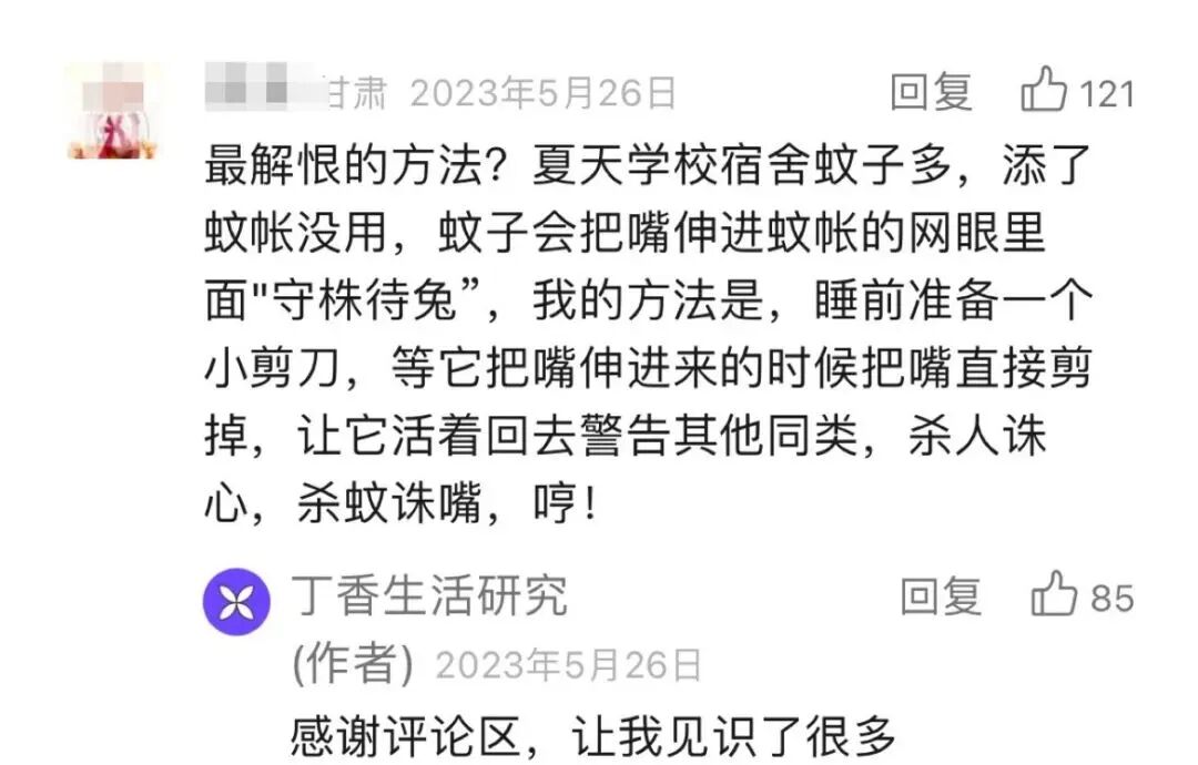 拍毙之外,大家还找到了五花八门的“报仇”方案。反正蚊子可以说是最讨人厌的生物了。