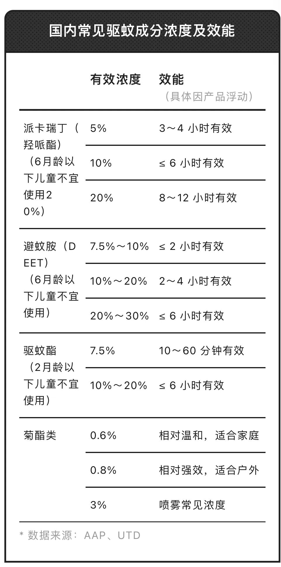 不同浓度,对应的驱蚊时效也不同。这也是为啥你一开始抹的驱蚊产品,到后面不管用了。