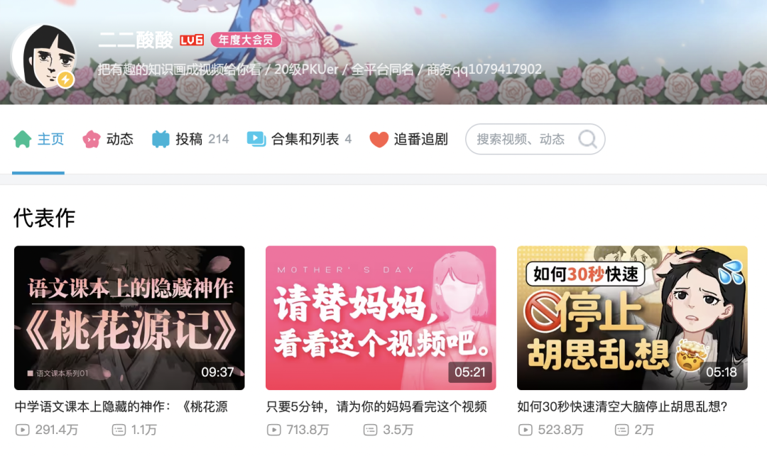 B站也有“混子曰”的号@混知,逗趣漫画风格,用段子手的方式介绍历史名人、典故的冷知识,很多家庭都有他的书,其实动画形式也很不多,挺有意思、挺涨知识的一个号。