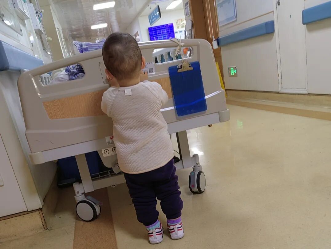 宝宝嫌病房里太憋闷,喜欢去走廊转转丨作者供图