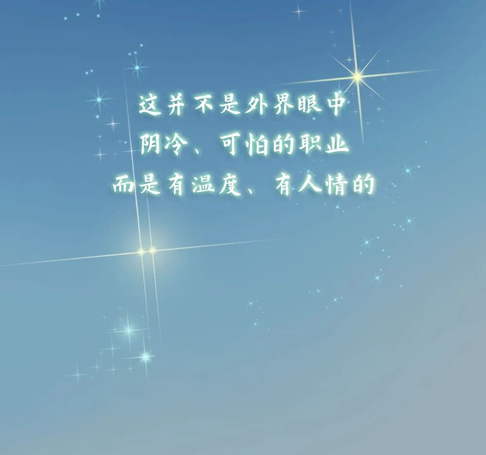 而从事殡葬行业的工作者,在生活中却常常受到别人的误解。其实殡葬只是一份普通的工作而已,服务的对象有点特别,但让逝者有尊严地迈向下一段旅程,是殡葬行业的意义所在。
