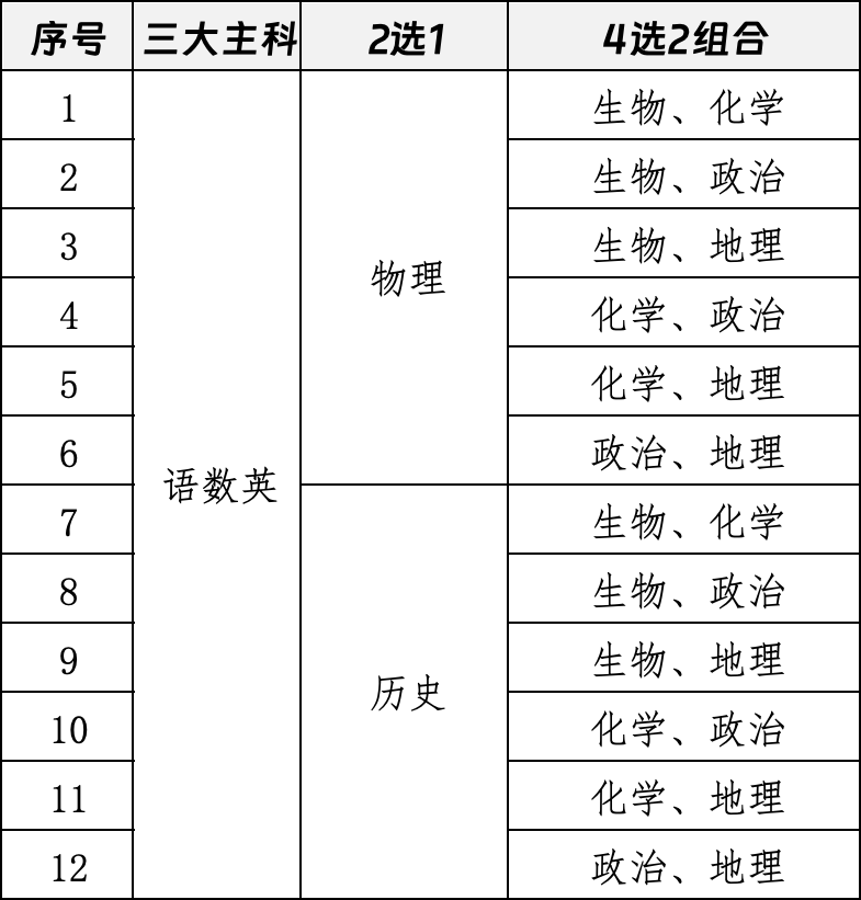 各位家长可以参考下表,看看自己所在省份是哪种新高考模式。不出什么意外的话,短期内后面加入的省份新高考模式都会是“3+1+2”。既然如此,对于大部分省市的考生来说,物理和历史,二选一,决定了大学所报专业的文理科大方向。而剩下的几门科目中,化学又比其它科目的“含金量”更高一些,原因如下。理论上高考(3+1+2)可选的三科组合有12种,即:但从各大省市高校实际的招生要求来看,很多专业都限定了选课要求。