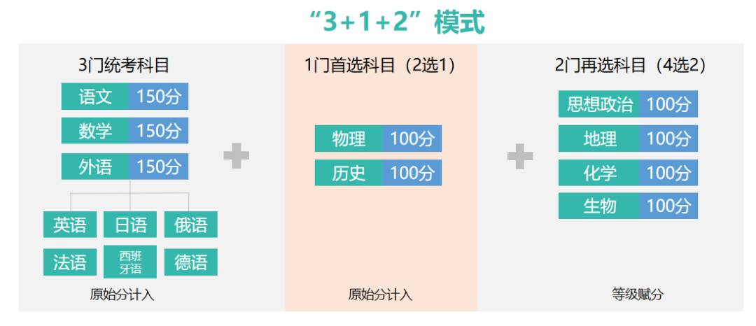 “2”指的是:考生从化学、生物、地理和政治四门科目中选两门,选考由各省命题,通过等级赋分的方式,将赋分后的成绩计入考生总成绩。