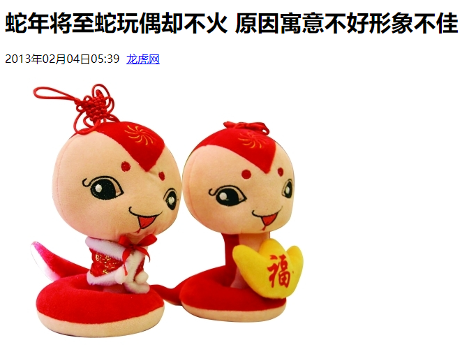 但到了蛇年,看到丑蛇吉祥物轮番出街,我却只能说一句情有可原——因为在十二生肖的行列里,实在没有谁是比蛇更难做成吉祥物的了。
