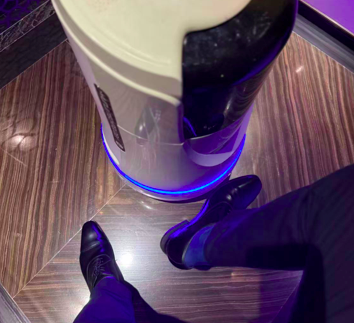 ♀️因为非要站中间,有的机器人被喝醉酒的客人暴打(喝酒不好!损坏他人财物不好!)。