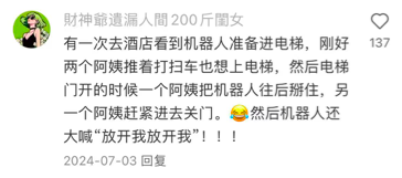 ♀️看到轿厢里人太多没法站中间,有的机器人会果断选择等下一趟电梯,点餐的客人就饿着吧;