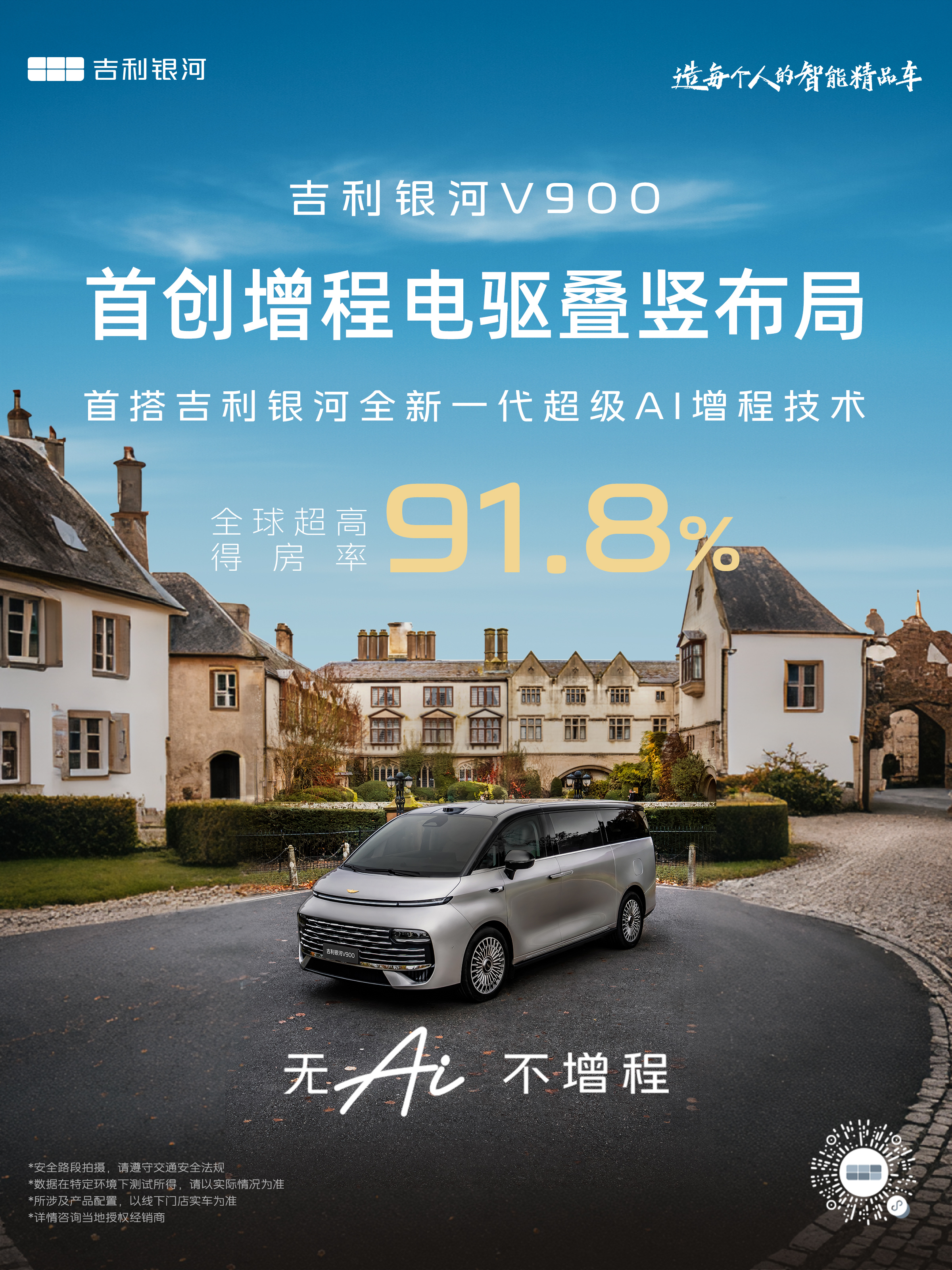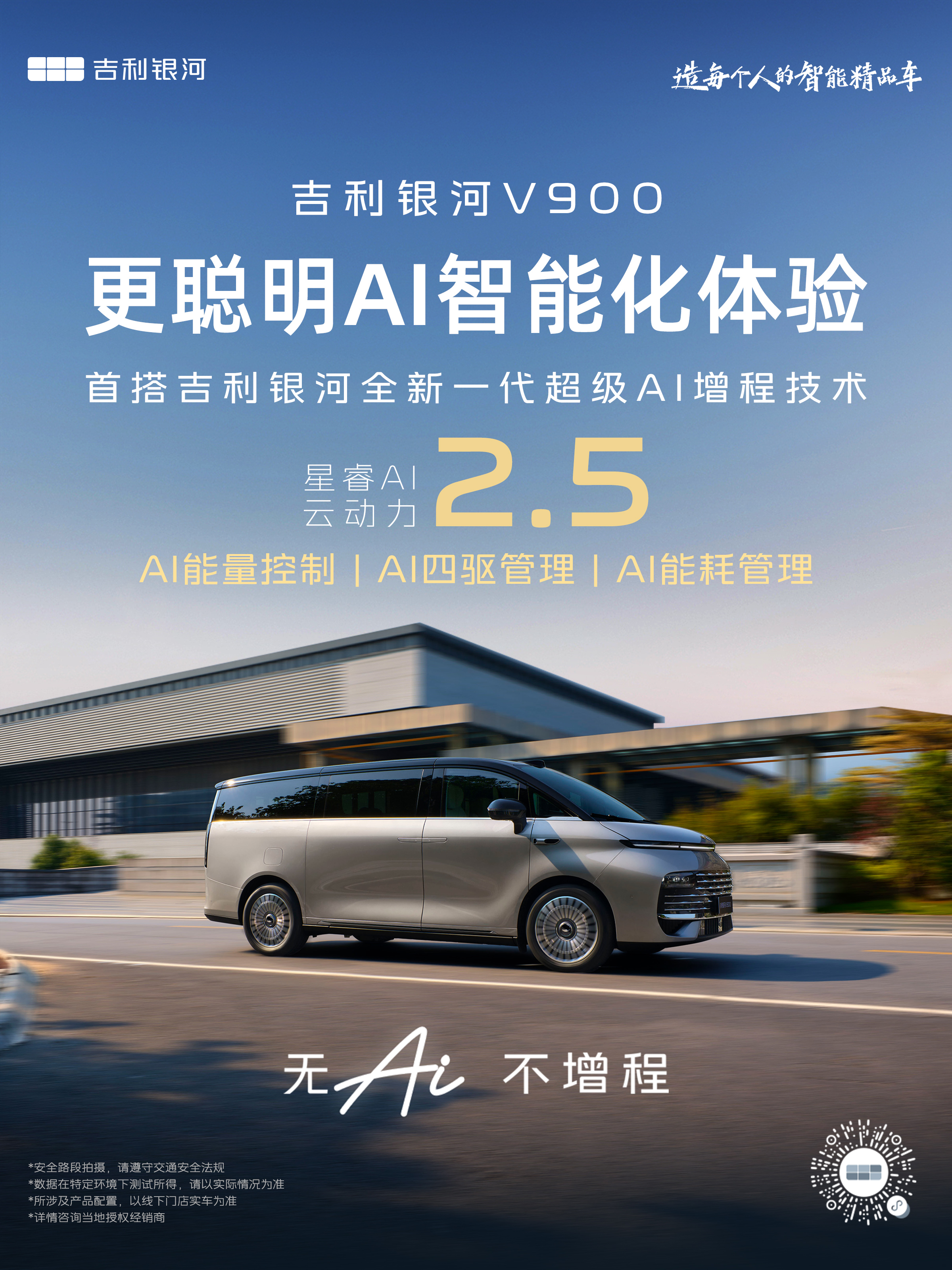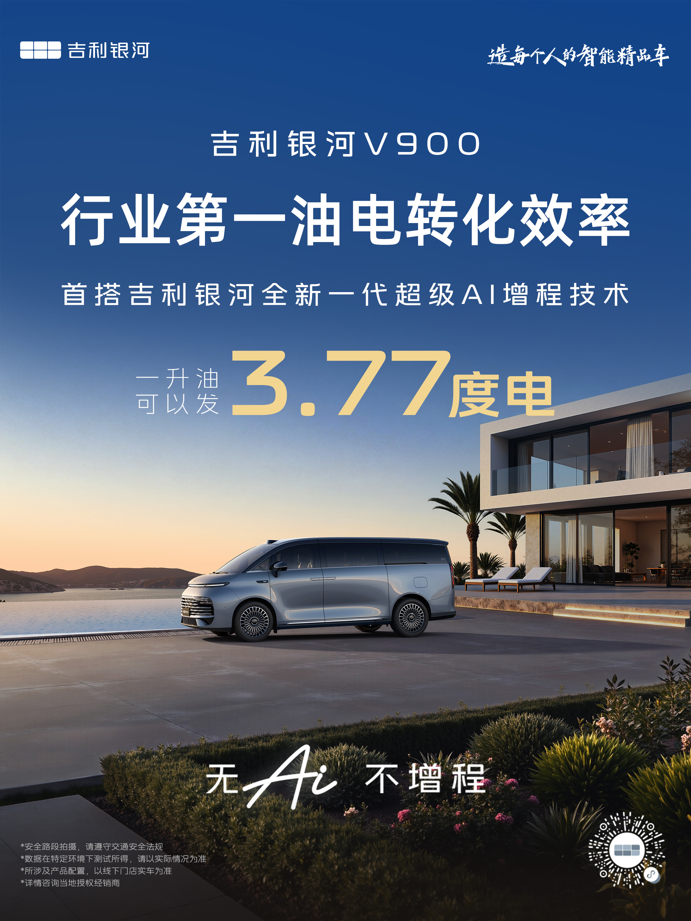 今日,这位“破局者”正式亮剑。吉利银河旗下全新力作——AI全场景家庭旗舰MPV银河V900,携“全新一代超级AI增程技术”磅礴而来。它不仅仅是一款新车,更是吉利汽车技术战略的集大成者,以其定义的“全球空间最大、四驱性能最强、综合能效最高、AI智能最好”四大核心价值,宣告了一个属于智能增程MPV的新时代的开启。