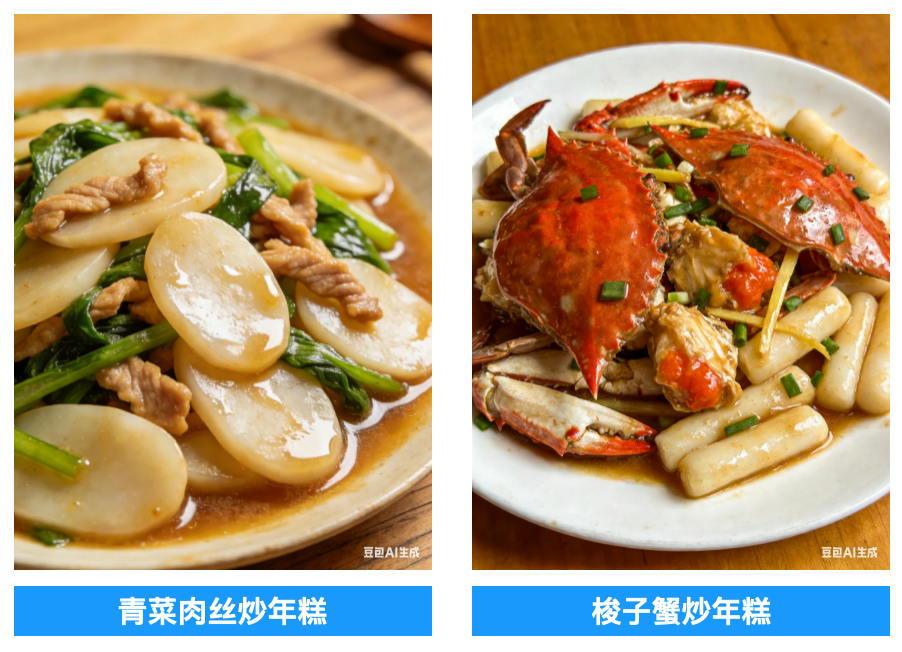 ✓ 温度是关键:米酵菌酸在温暖、潮湿且保存不当的环境中更容易产生,尤其在接近 26℃ 时风险明显增加[1]。如果室温较高、开暖气,或气温明显回升,就不适合再水养年糕了。这也是民间常说“春水养不了年糕”的原因。✓ 坏了直接扔:一旦发现水变浑浊、有异味,年糕表面发黏或出现霉点,说明微生物风险已明显升高,应果断丢弃,千万不要心存侥幸。同样是年糕,南方人吃出的各种花样年糕的魅力,就在于它的“百搭体质”。在南方人的餐桌上,它能完美融入各种场景: