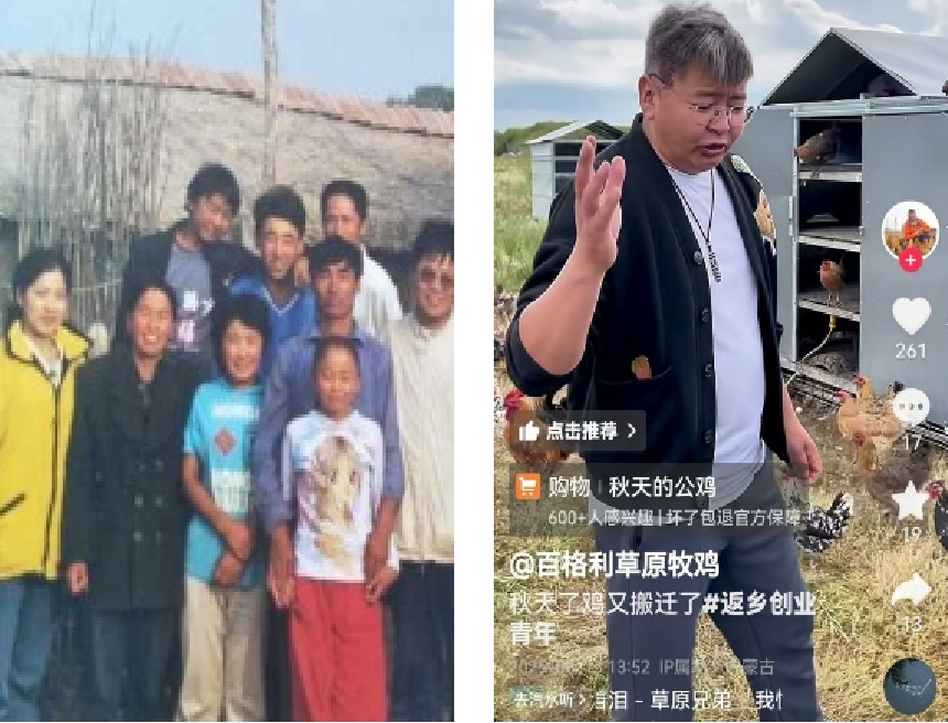 这就是照片里那个歪头的小伙子,他现在做起了网络直播。他用蒙语、汉语来进行直播,一方面售卖鸡和鸡蛋,另一方面也在宣传我们的养鸡模式。