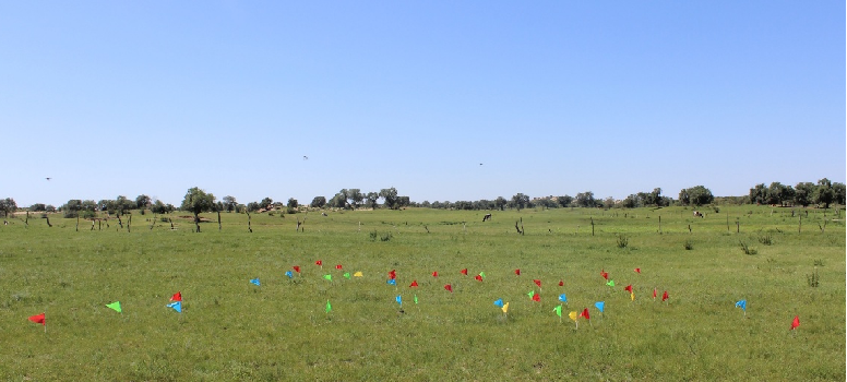 这张图里我们插的一些不同颜色的彩旗,代表不同新鲜程度的牛粪。