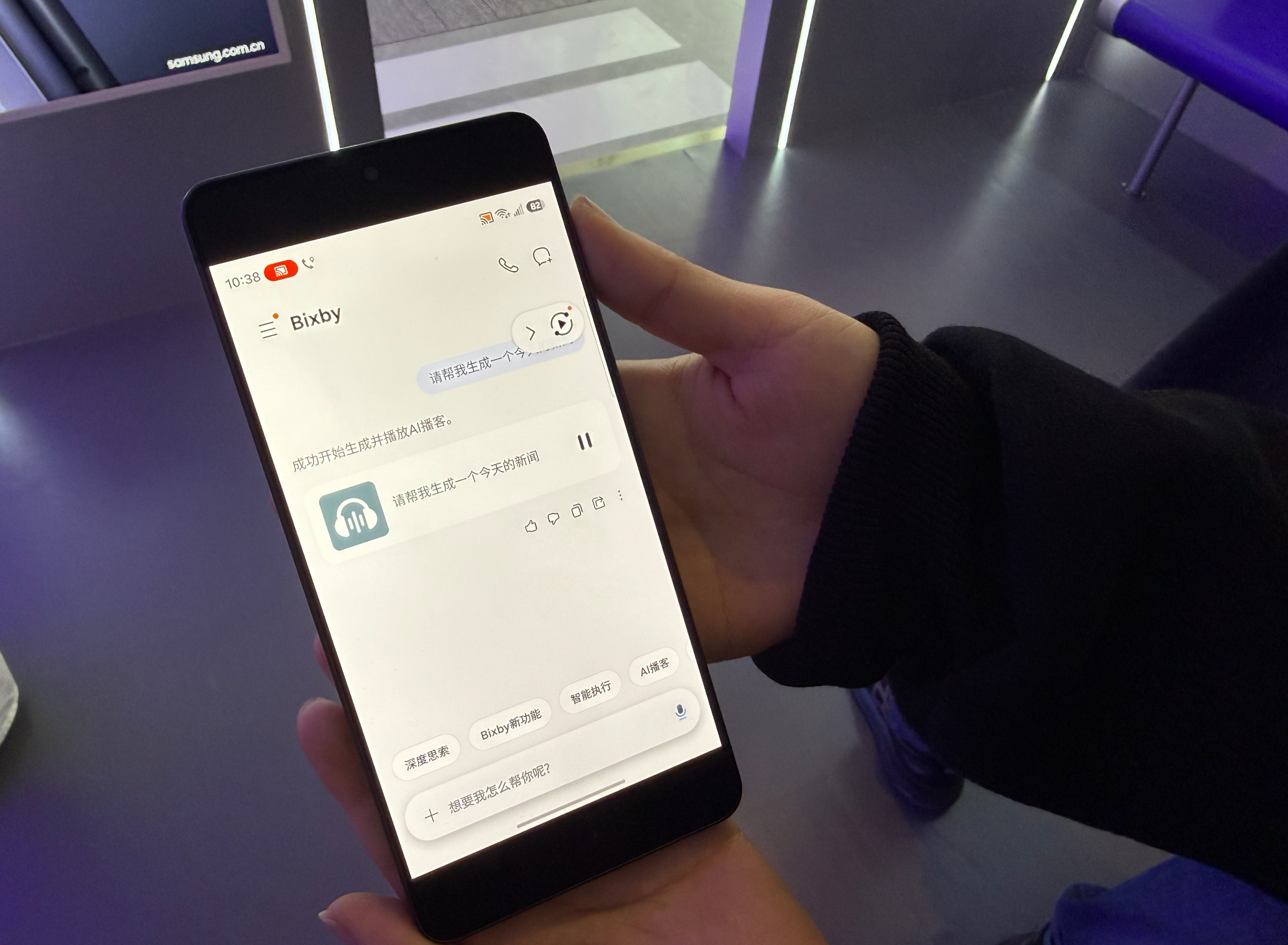 值得一提的是,Bixby新增的AI播客可以根据用户意图或是文档、网页链接,生成一段自然的对话式播客内容。
