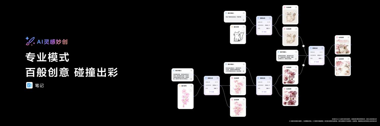 对于非专业创作人士而言,AI灵感妙创也可以玩出花样,针对Plog配图、表情包等日常需求,推出快速生图功能,用户只需输入图片,涂鸦结合简单描述,即可完成生图并嵌入笔记或保存到图库。快速留住灵感,让生活更加有趣。